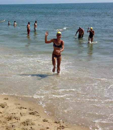 I swam until my fingers hit the bottom then ran out to the finish. Erg…frolicked apparently.